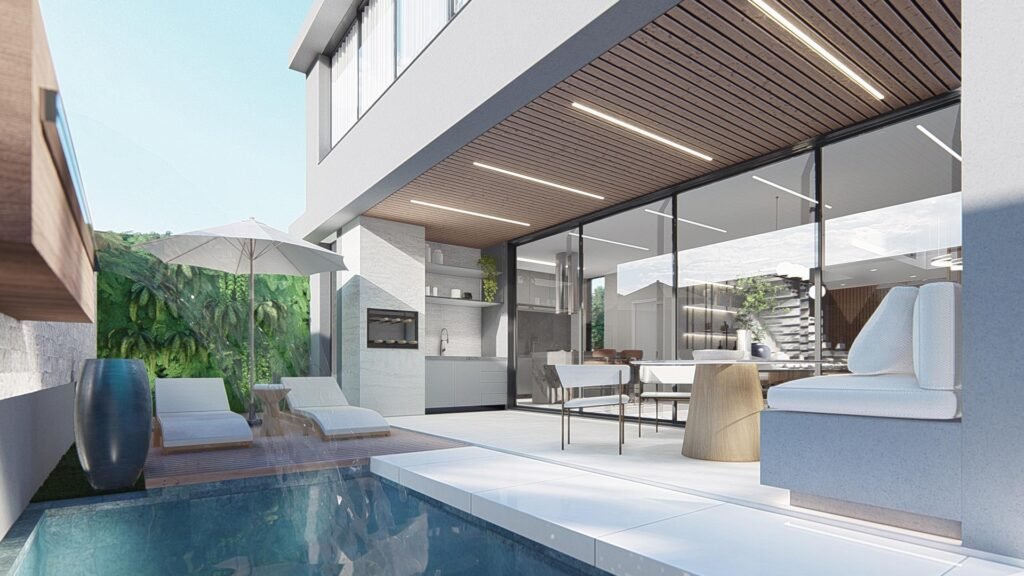 Mais do que uma fachada, este é o primeiro gesto de boas-vindas da casa. Um convite silencioso a desacelerar e entrar em um espaço onde o tempo corre de outro jeito — com mais leveza, privacidade e cuidado.