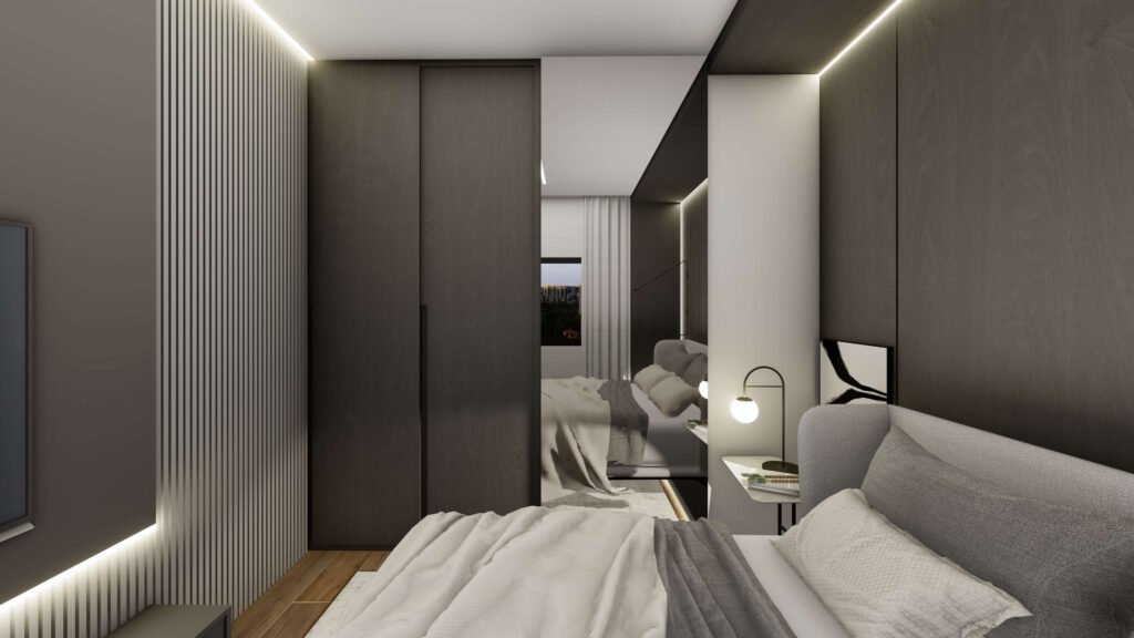 A geometria precisa, a delicadeza das cortinas e o cuidado com os vazios revelam uma arquitetura que valoriza o silêncio, a luz e a experiência do morar. É uma casa que se protege do movimento da rua, mas que convida à contemplação e à calma — um refúgio urbano onde tudo foi pensado para proporcionar equilíbrio entre estética, funcionalidade e bem-estar.